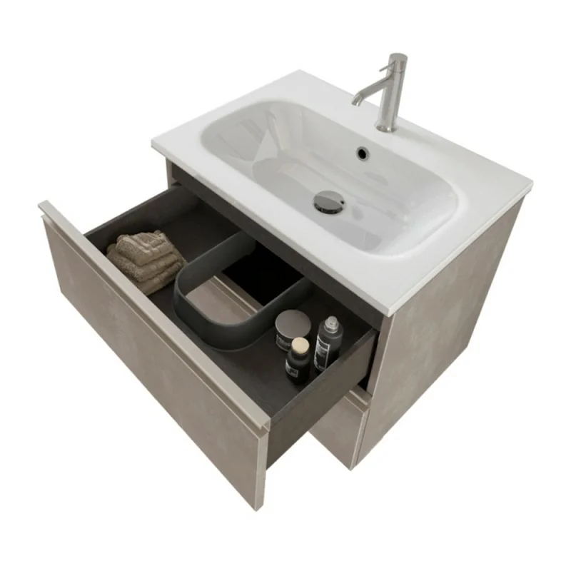 Mobile bagno sospeso – Master 60 cm grigio cemento con 2 cassetti e lavabo consolle