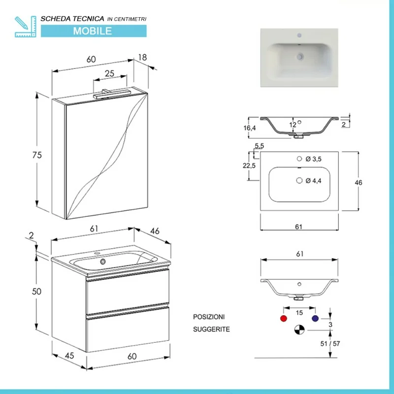 Mobile bagno sospeso – riepilogo caratteristiche:
