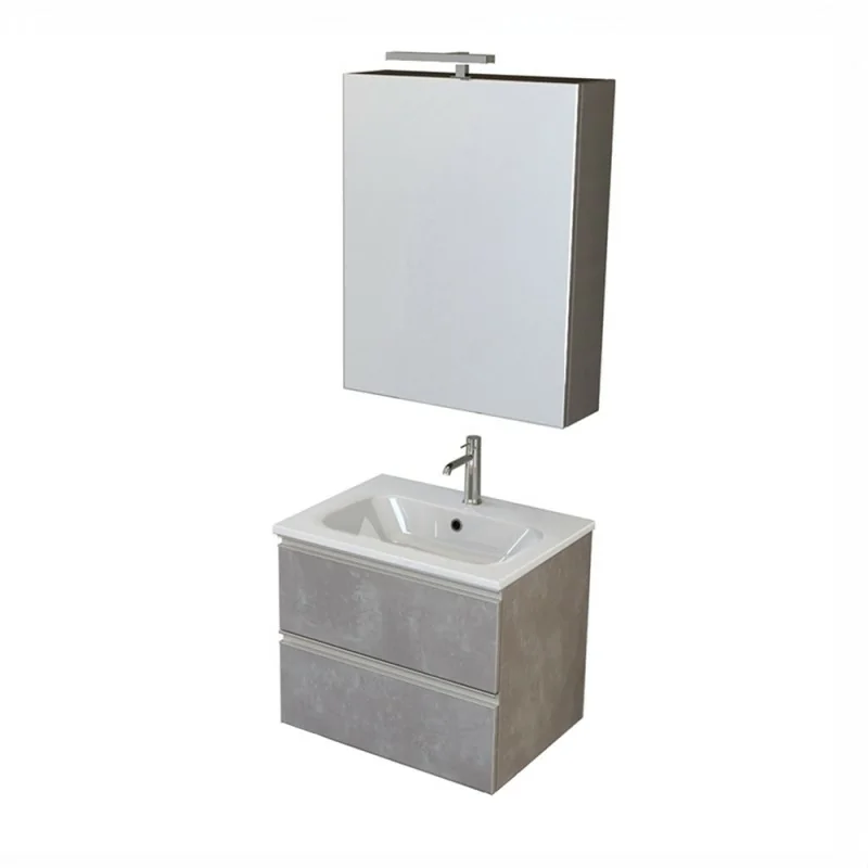 Mobile bagno sospeso 60 cm Master grigio cemento con specchio contenitore
