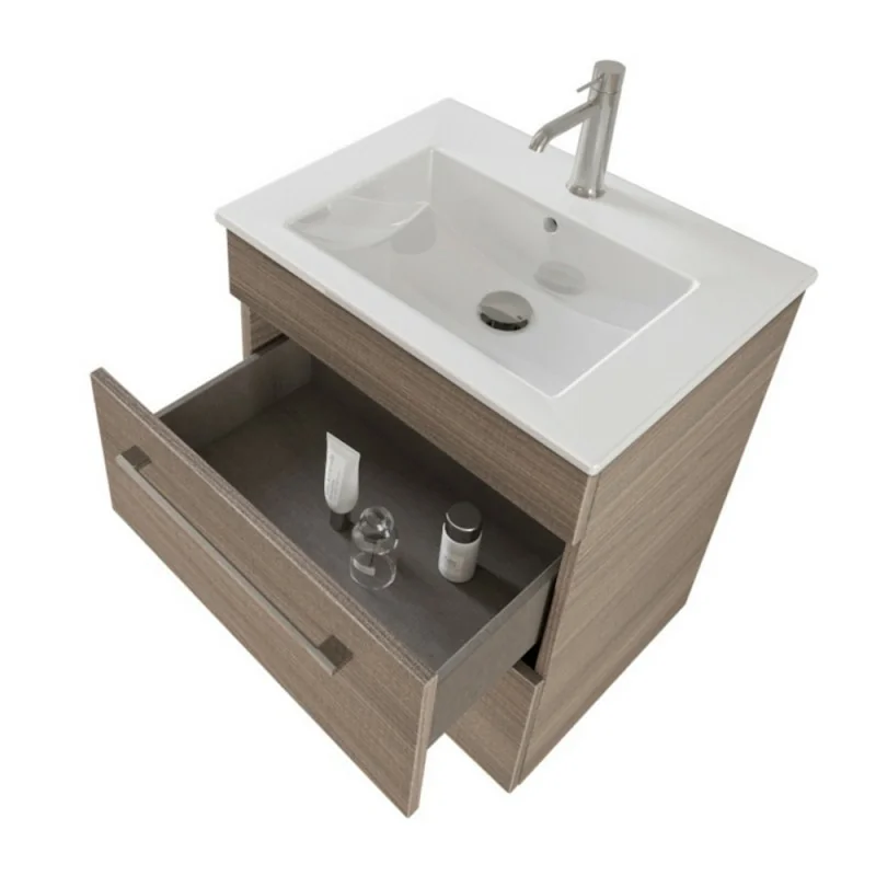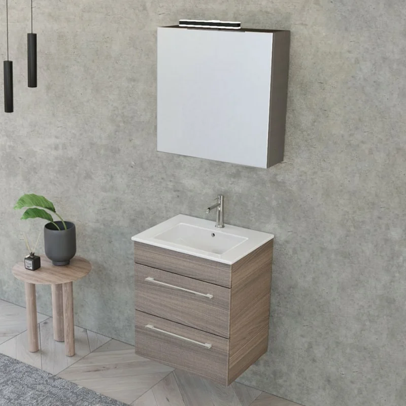 Mobile bagno sospeso – Smart 55 cm olmo con 2 cassetti,lavabo e specchio contenitore