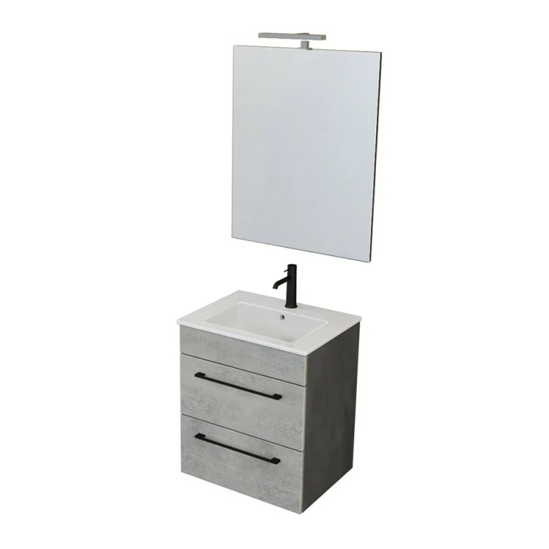 Mobile bagno sospeso 55 cm Smart grigio legno/lava con lavabo e specchio