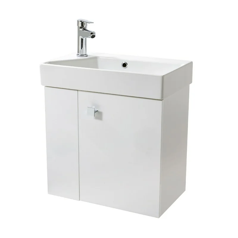 Mobile bagno sospeso salvaspazio 55 cm bianco lucido con specchio Strada