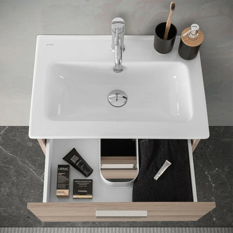 Il mobile bagno salvaspazio Miami è con finitura corda effetto legno,dotato di due cassetti,il primo con alloggio salva sifone,maniglie cromate e chiusura soft-close. Il mobile è preassemblato,completo di kit di fissaggio e staffe di sostegno per installazione a parete.