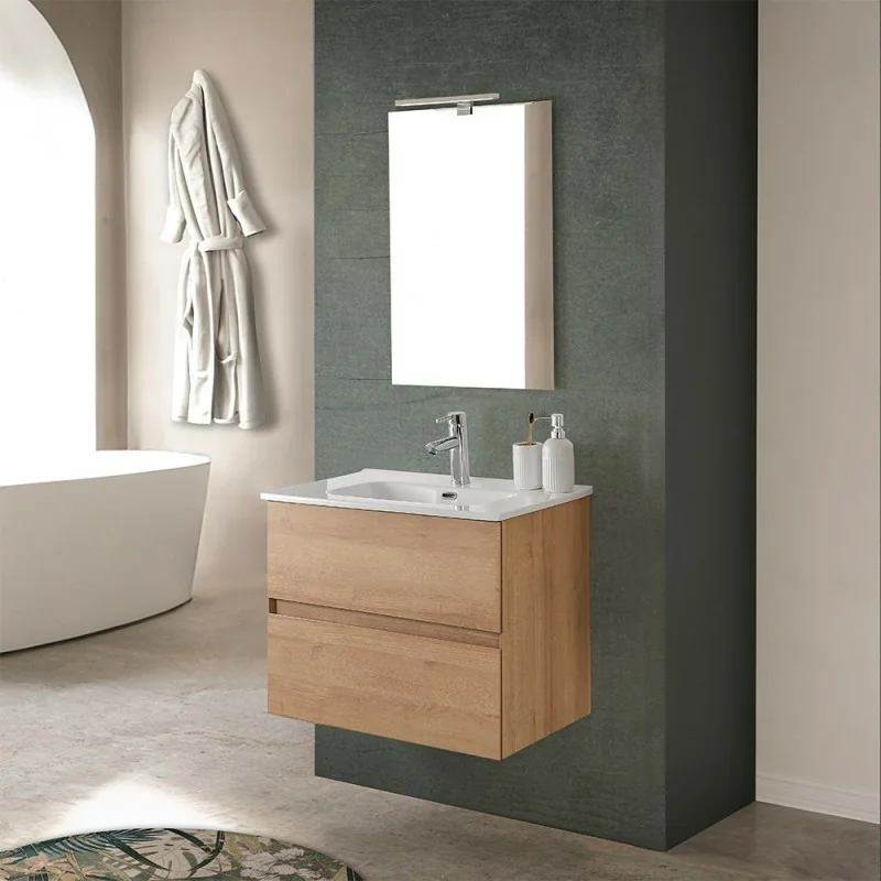 Mobile bagno sospeso 60 cm noce gold con lavabo e specchio Dafne