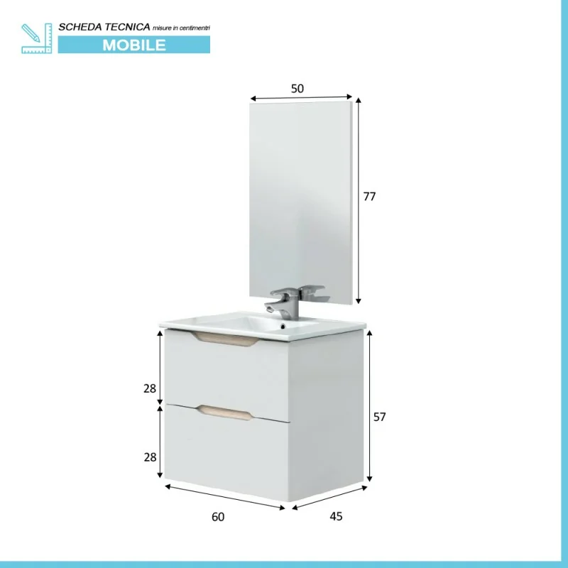 Mobile bagno sospeso 60 cm Brillo caratteristiche tecniche: