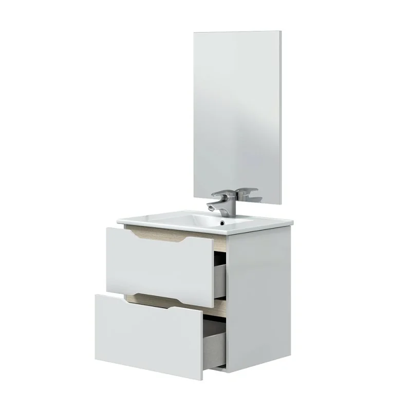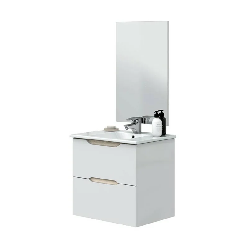 Mobile bagno sospeso 60 cm bianco e rovere con top e specchio Brillo