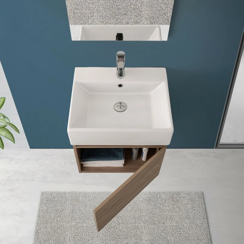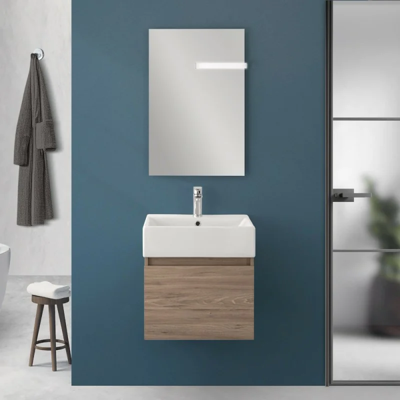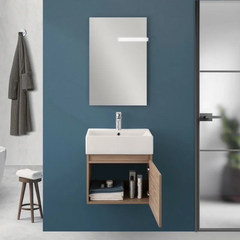 Mobiletto bagno sospeso 50 cm salvaspazio rovere 1 anta Kira