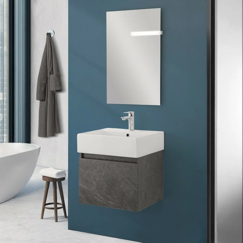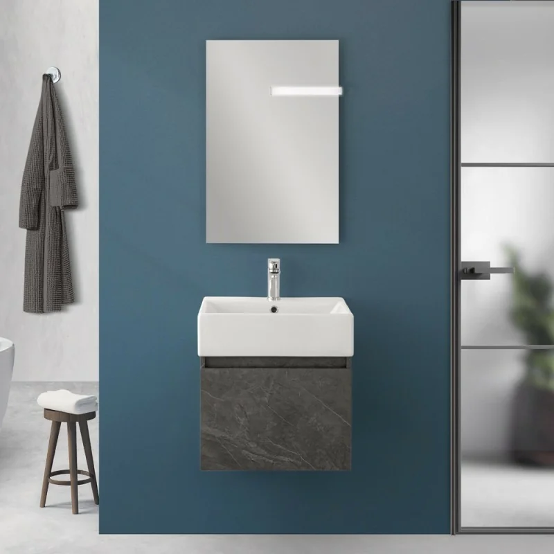 Mobiletto bagno sospeso 50 cm salvaspazio pietra 1 anta Kira