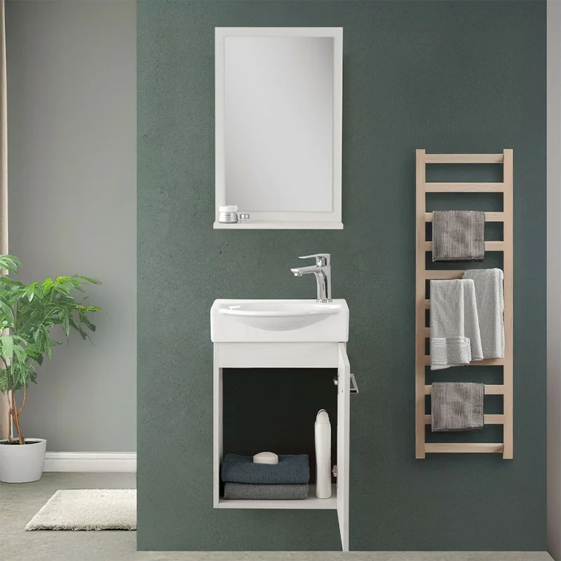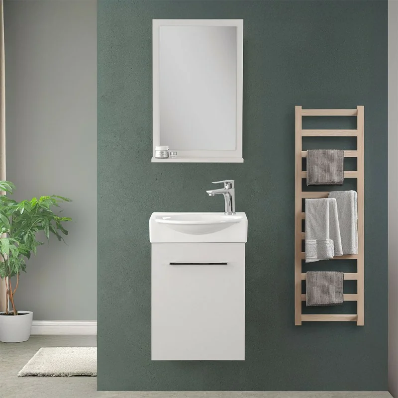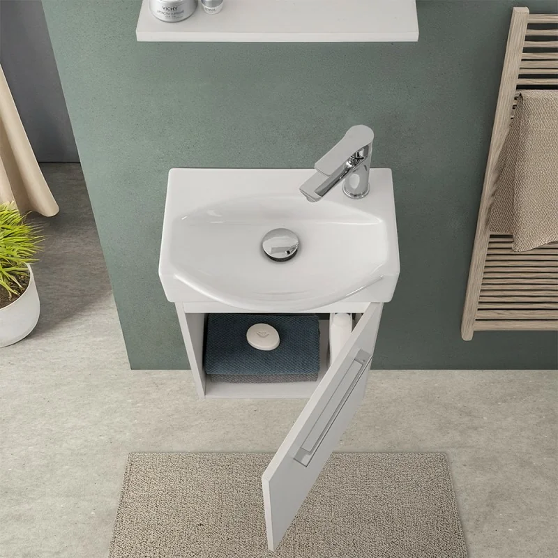 Mobiletto bagno sospeso 39 cm mini salvaspazio bianco 1 anta Elys