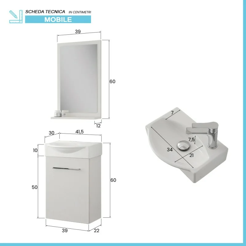 • Dimensioni mobile: L 39 x P 22 x H 60 cm;