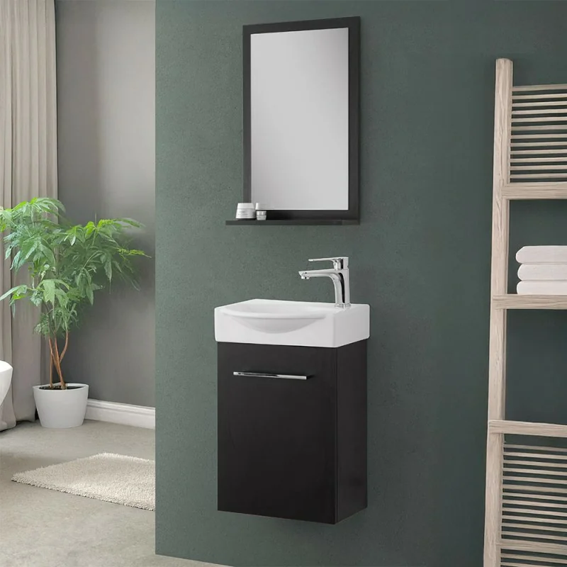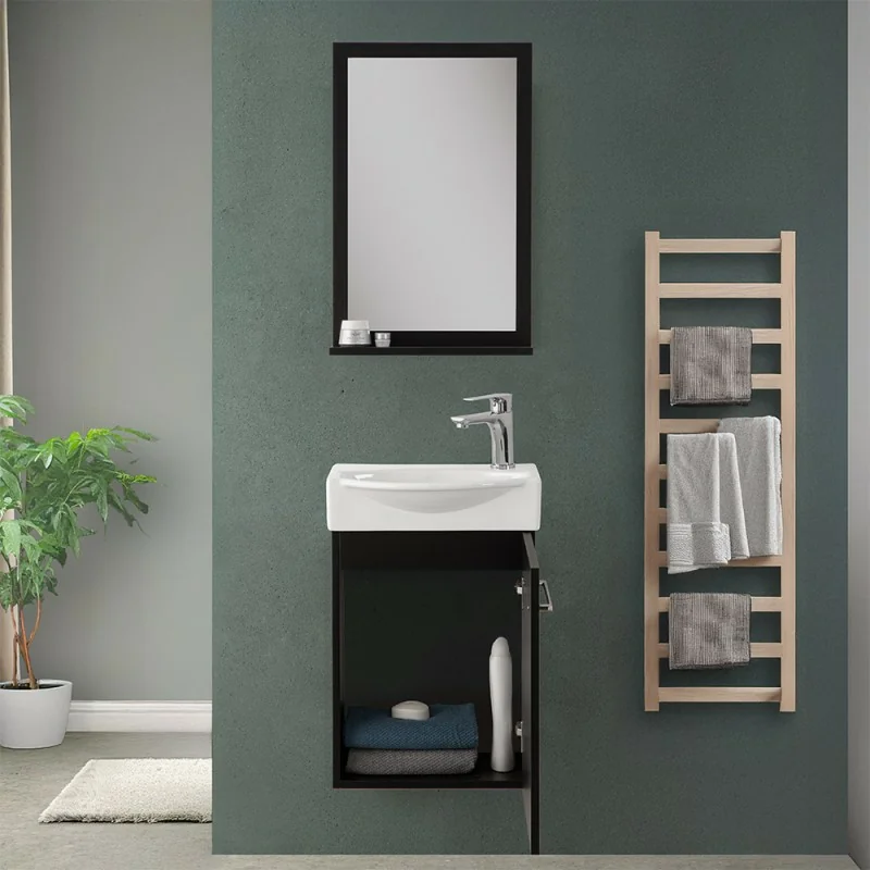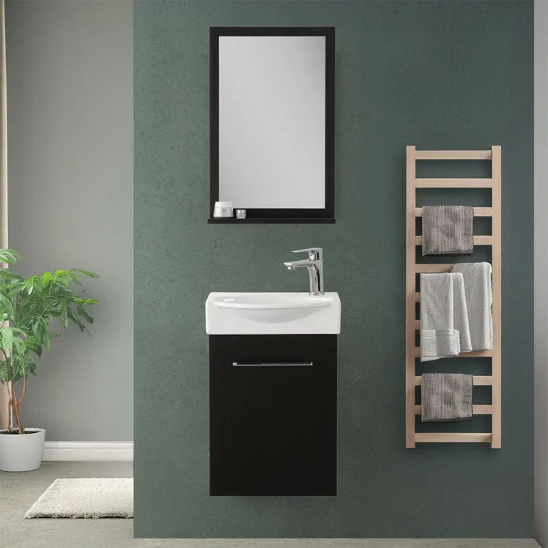 Mobiletto bagno sospeso 39 cm mini salvaspazio nero 1 anta Elys