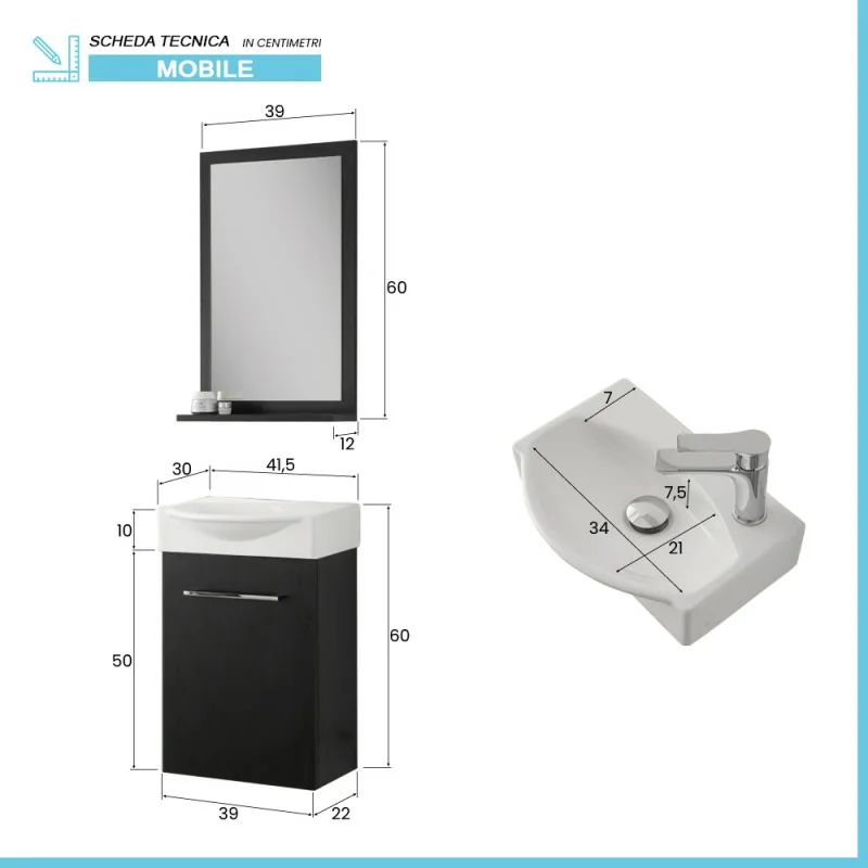 • Dimensioni mobile: L 39 x P 22 x H 60 cm;