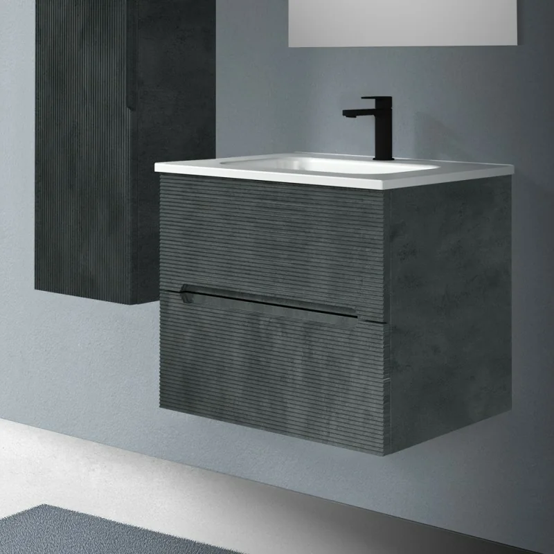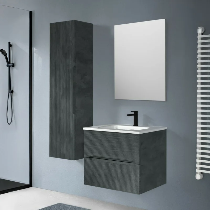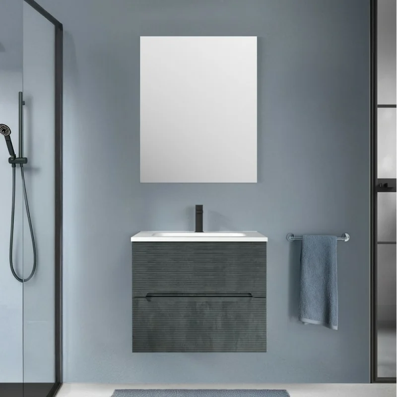 Mobile bagno sospeso 60 lava cannettato 2 cassetti lavabo e specchio Rigo