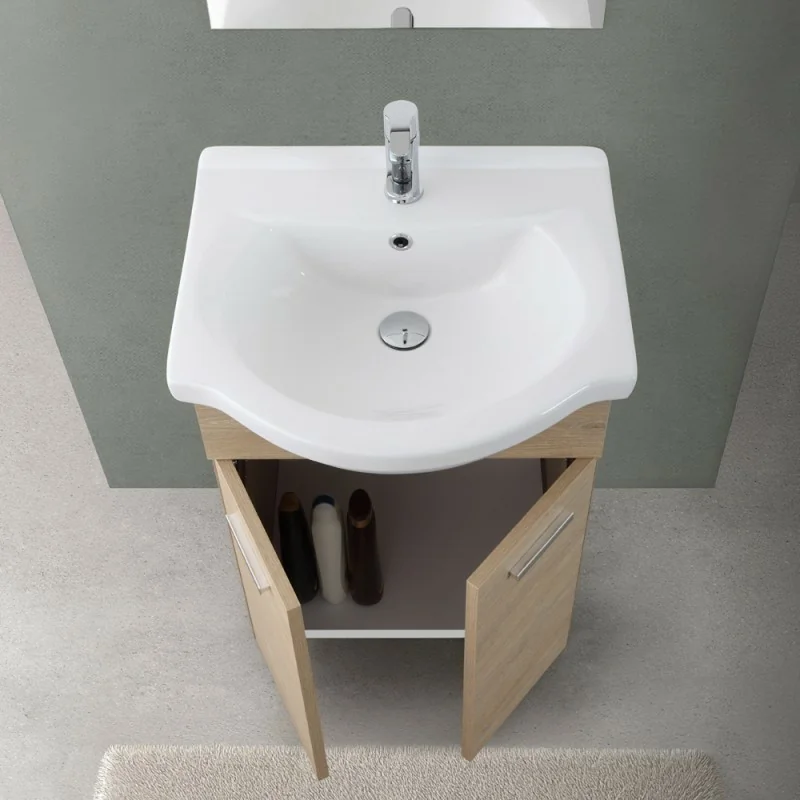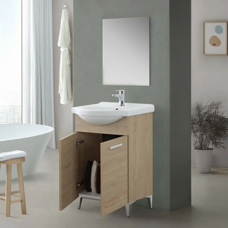 Mobile bagno a terra 55 cm Rovere Dolomite completo di lavabo e specchio Desya