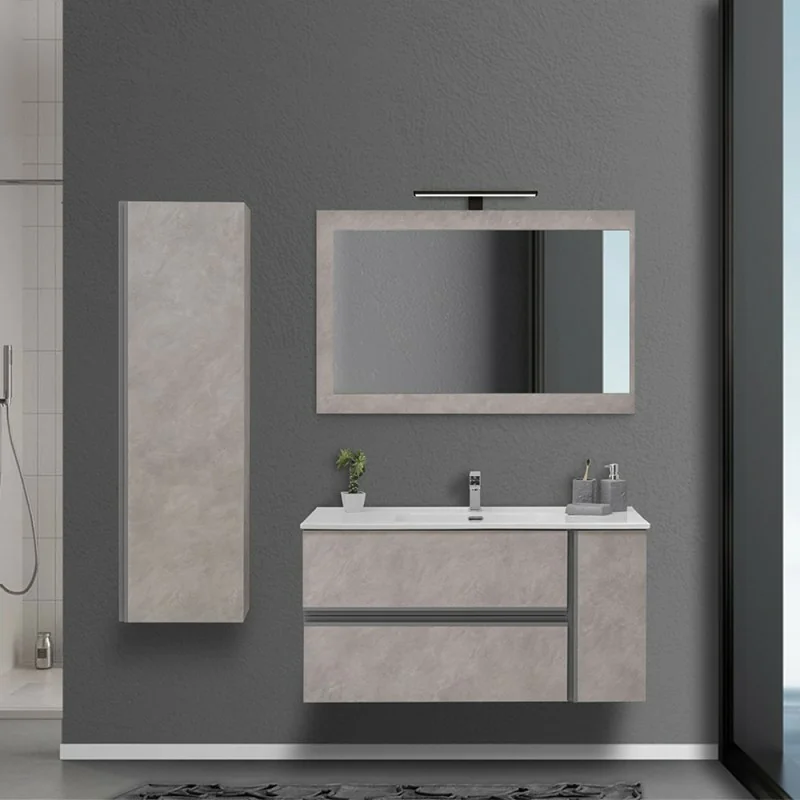 • Tipologia: Mobile Bagno da 110 cm con 2 cassetti e un'anta in Effetto Pietra Oxid;