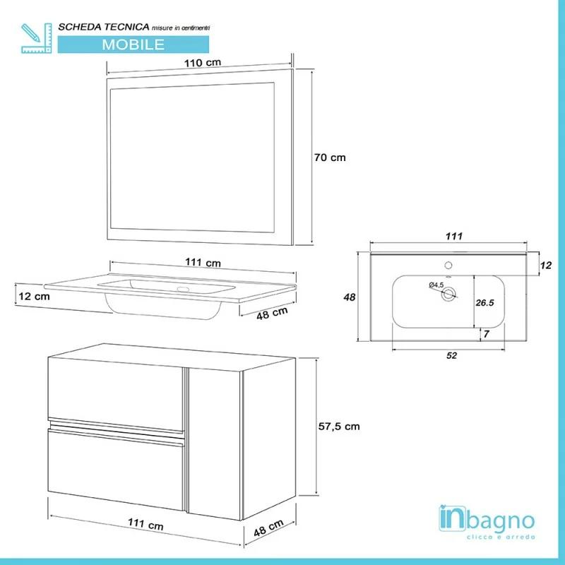 • Dimensioni Mobile (LxHxP): 110 x 57,5 x 48 cm;
