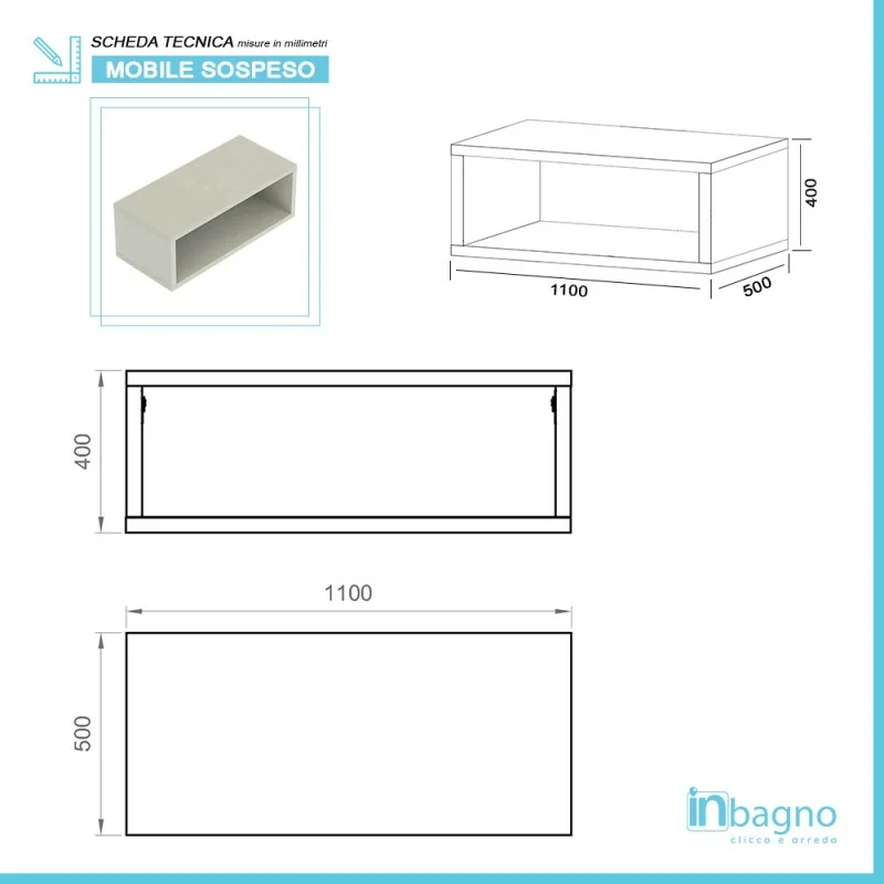 • Tipologia: mensolone con ripiano sottostante sospeso
