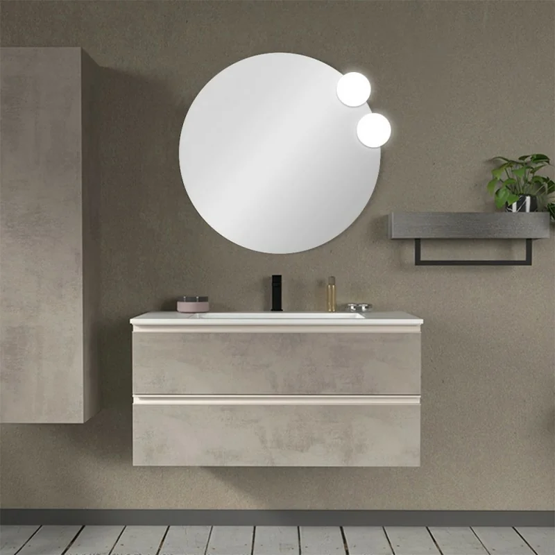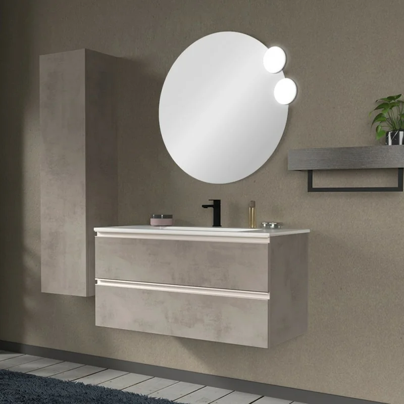 Mobile bagno sospeso 100 cm grigio cemento con lavabo e specchio Master