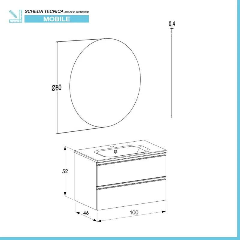 Mobile bagno sospeso 100 cm grigio cemento caratteristiche tecniche: