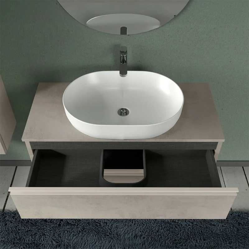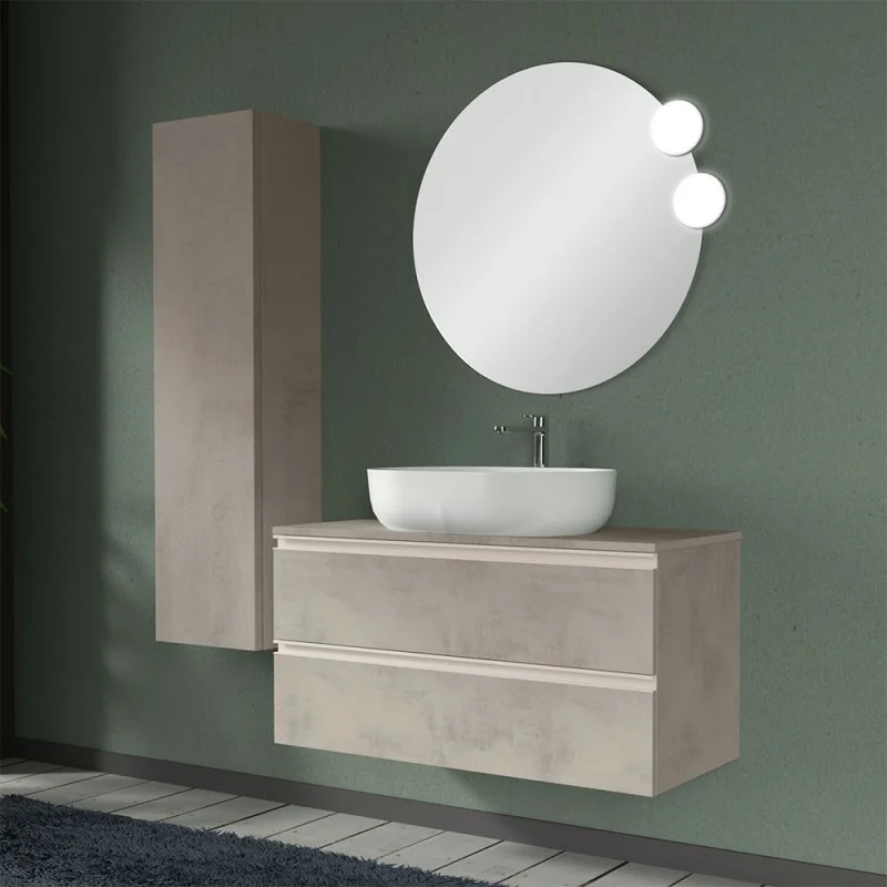 Mobile sospeso 100 cm per installazione lavabo d'appoggio finitura grigio cemento 2 Cassetti