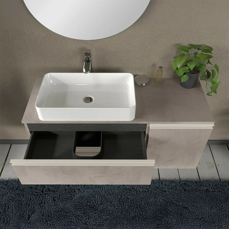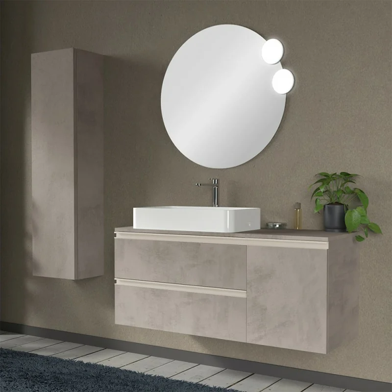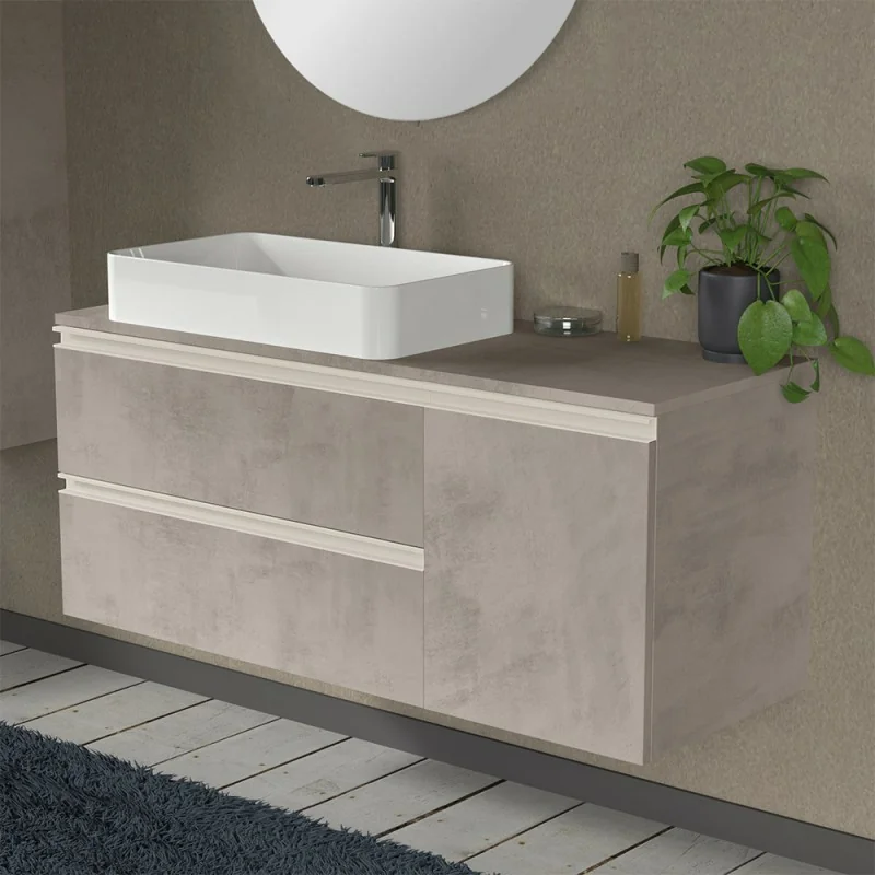 Mobile bagno sospeso 120 cm grigio cemento con anta e cassetti Master