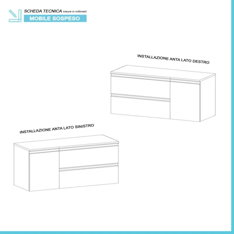 • Tipologia:mobile bagno sospeso;