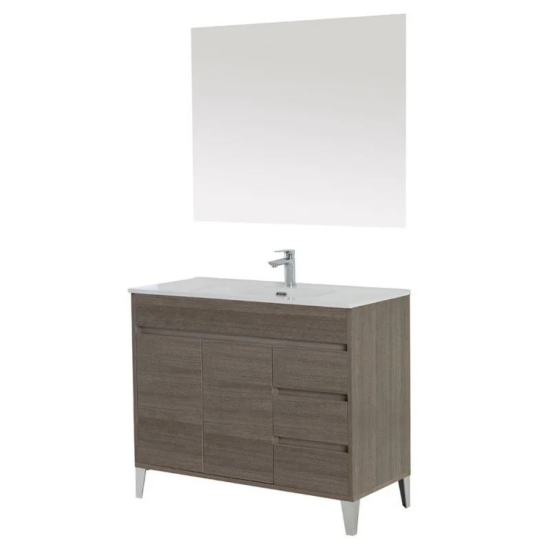 Mobile Bagno da terra 100 cm linea Way in rovere scuro con specchio e lavabo