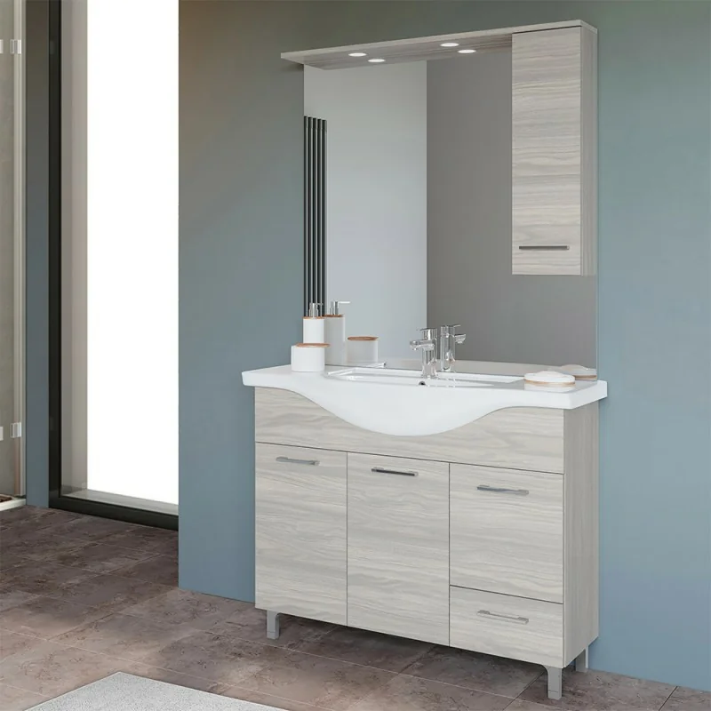Mobile bagno da terra 105 cm rovere grigio completo di specchio con pensile e LED Lavabo Mobile bagno da terra 105 cm rovere grigio Mobile bagno da terra 105 cm rovere grigio scheda tecnica Mobile bagno da terra 105 cm scheda lavabo Mobile bagno da terra 105 cm pensile Mobile bagno da terra 105 cm rovere grigio