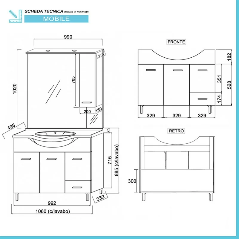 Mobile Sospeso 105 cm caratteristiche tecniche: