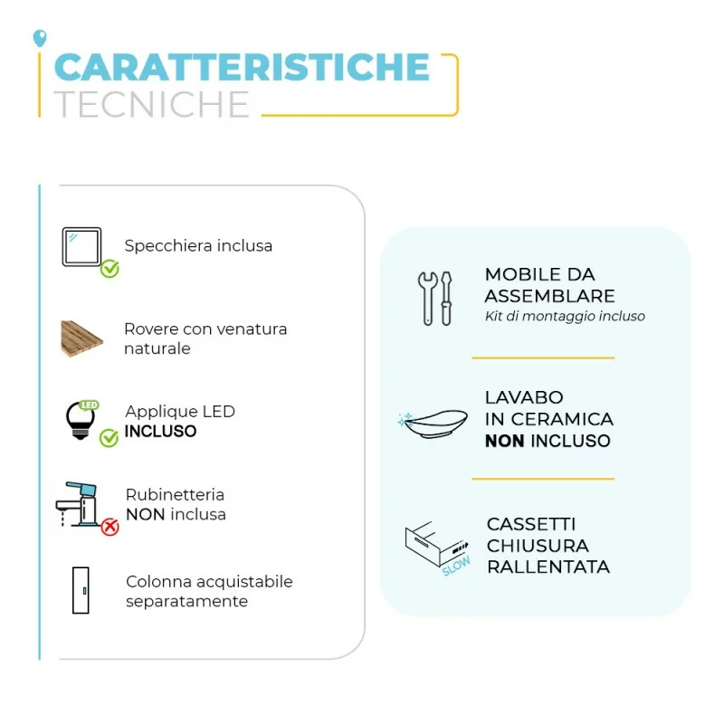• NON INCLUDE viti,fischer e lavabo d’appoggio,acquistabili separatamente;