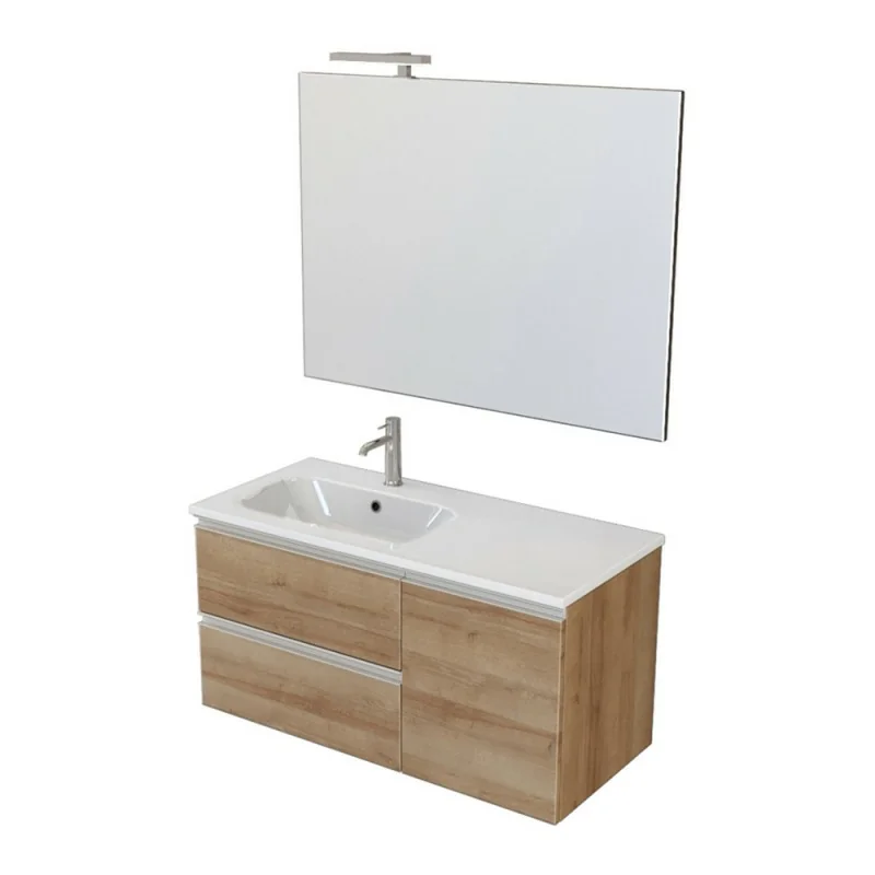 Mobile bagno sospeso – Master 100 cm rovere miele con 2 cassetti,anta e lavabo integrato