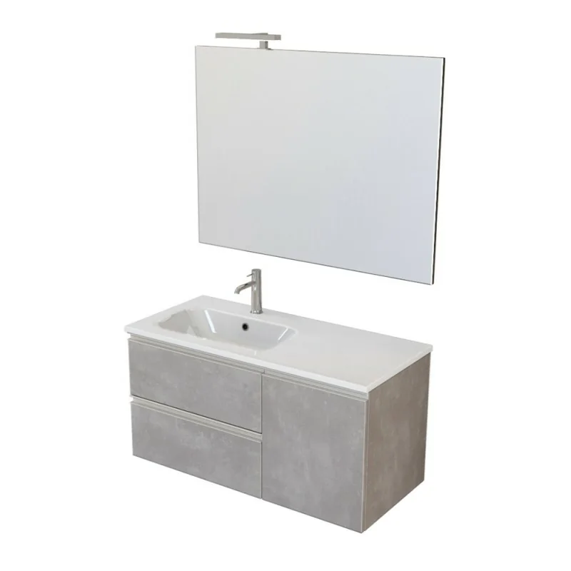 Mobile bagno sospeso – Master 100 cm grigio cemento con 2 cassetti,anta e lavabo integrato