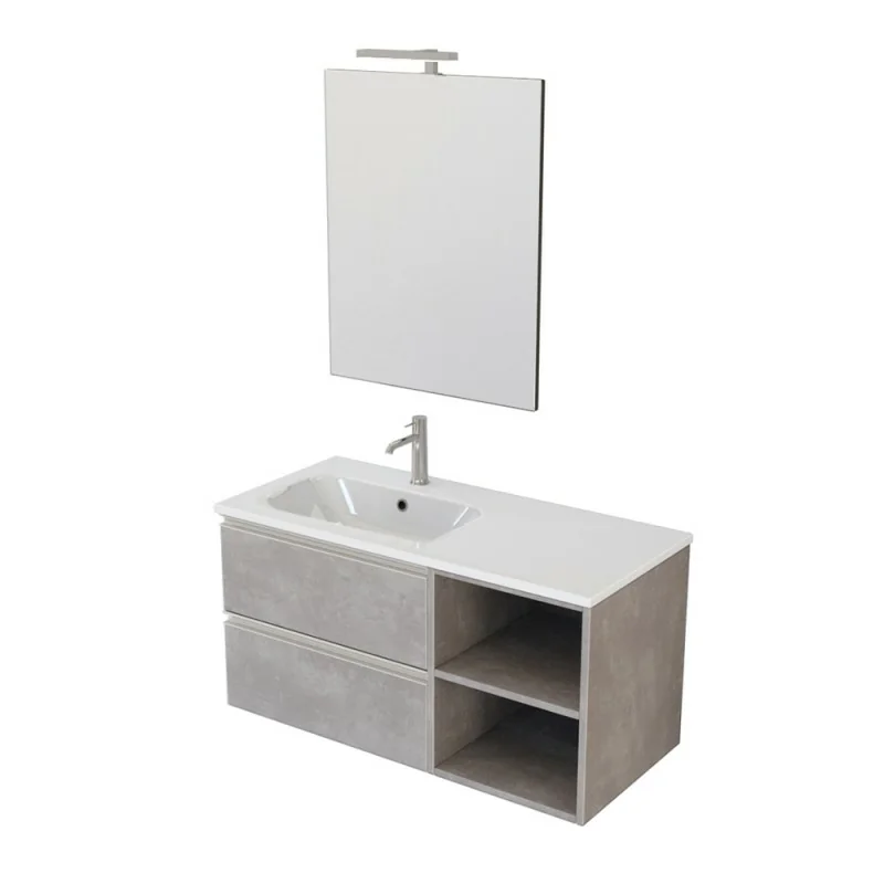 Mobile bagno sospeso 100 cm Master grigio con lavabo e specchio