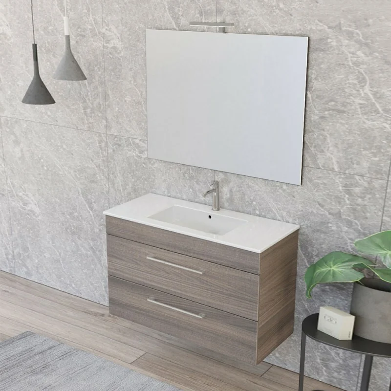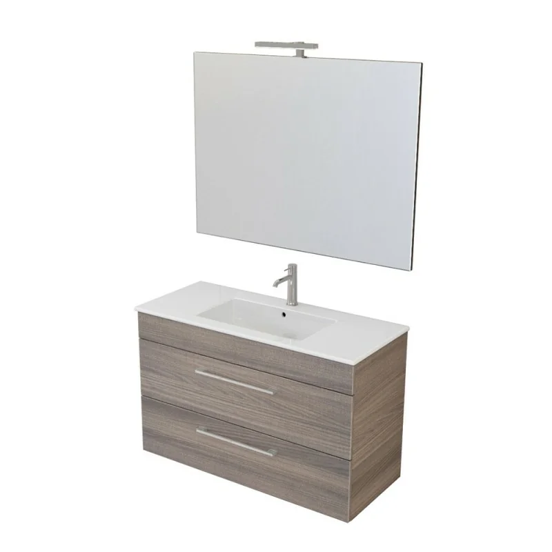 Mobile bagno sospeso 100 cm Smart olmo con lavabo e specchio