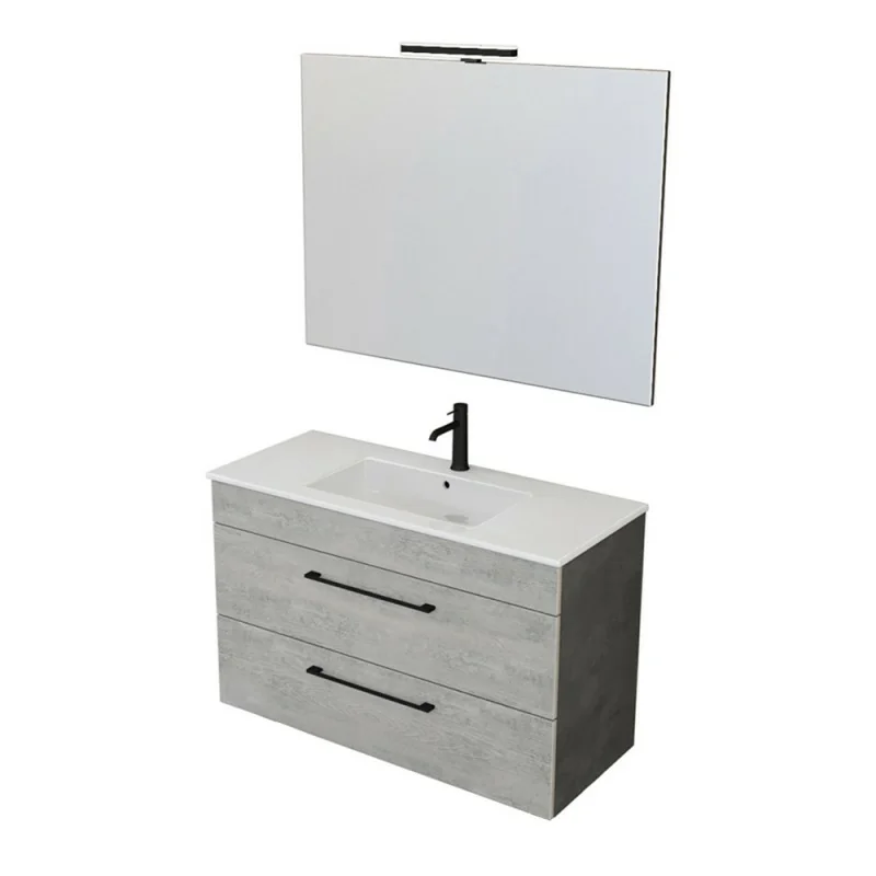 Mobile bagno sospeso 100 cm Smart grigio legno/lava con specchio