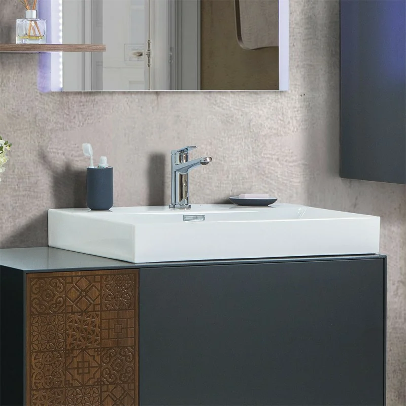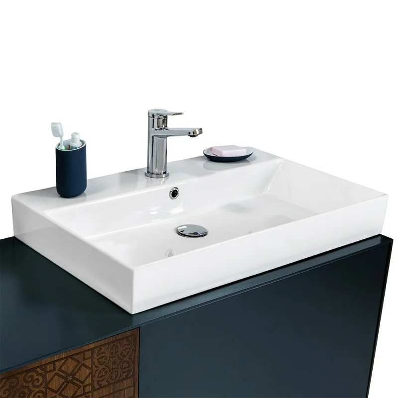 • Lavabo in ceramica completo di troppopieno e foro rubinetteria;