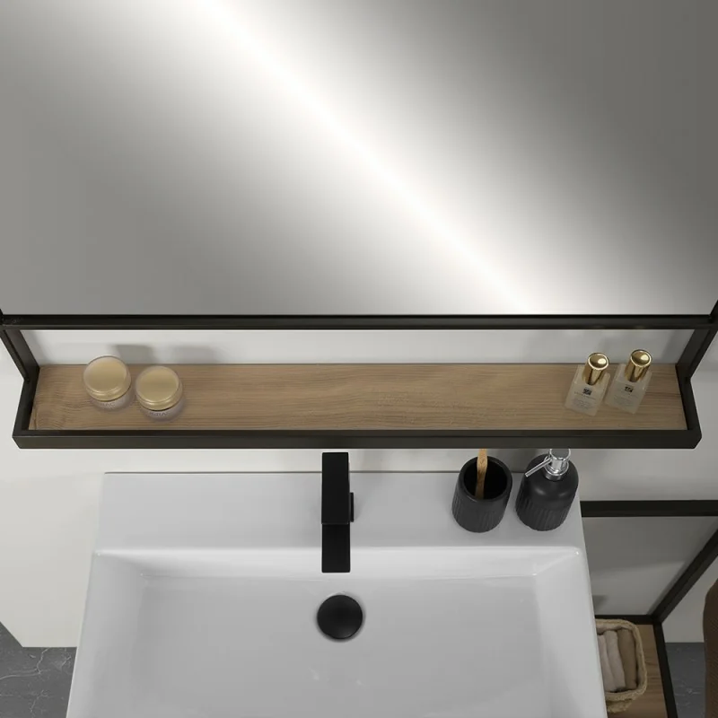 Un design pulito, moderno e funzionale: il mobile bagno sospeso Zante da 100 cm porta uno stile industriale deciso nel tuo ambiente, grazie all’elegante contrasto tra il legno naturale e i dettagli in nero opaco. Il set è completo di specchio con pratica mensola integrata e lavabo in ceramica, per una soluzione d’arredo completa, ideale per bagni contemporanei.