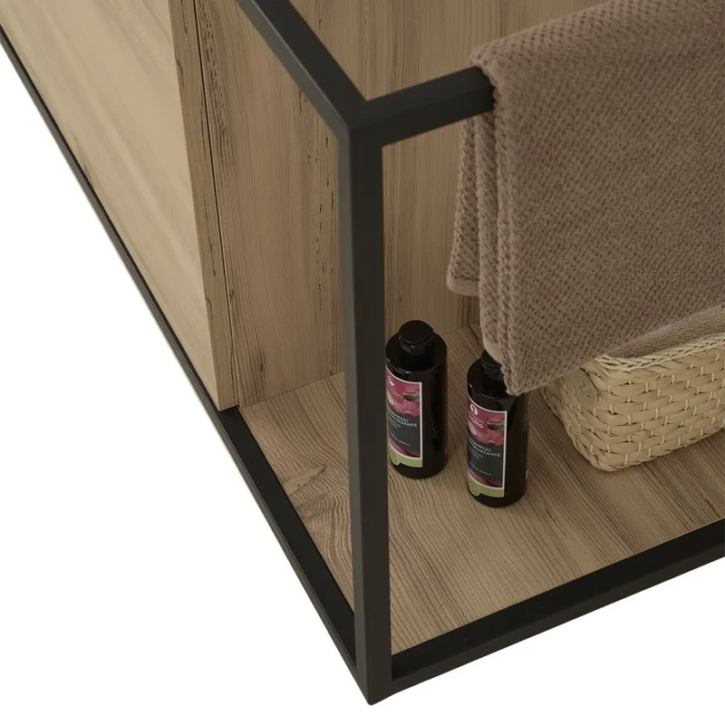 Mobile bagno sospeso L 100 cm serie Zante stile industrial colore legno naturale completo di specchio con mensola e lavabo