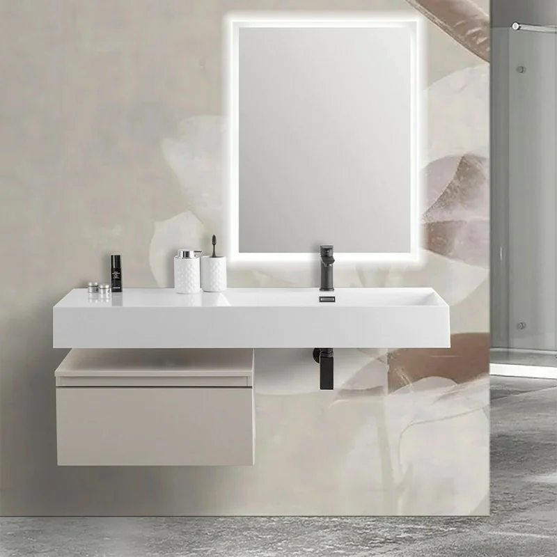 Mobile bagno con cassettone chiusura soft-close,specchio e lavabo in resina vasca decentrata Loto