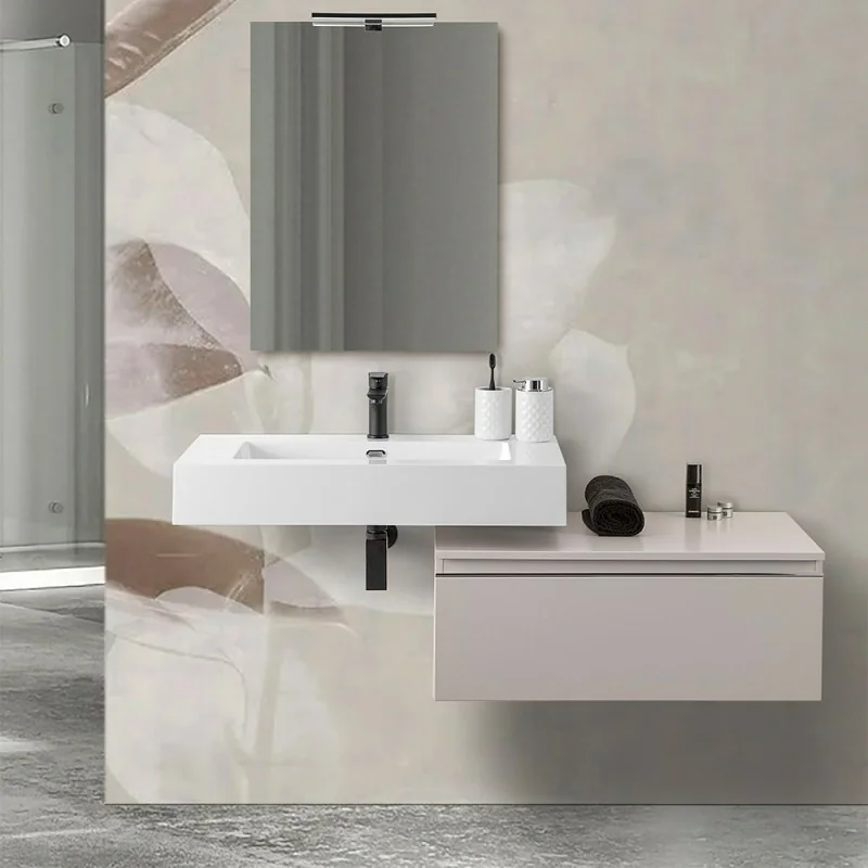 Mobile bagno 80 cm grigio perla lavabo sospeso 100 cm Lodi e specchio Iside