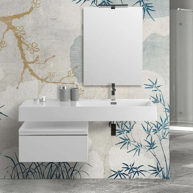 Mobile bagno sospeso 60 cm bianco lucido lavabo 120 destro e specchio Iside