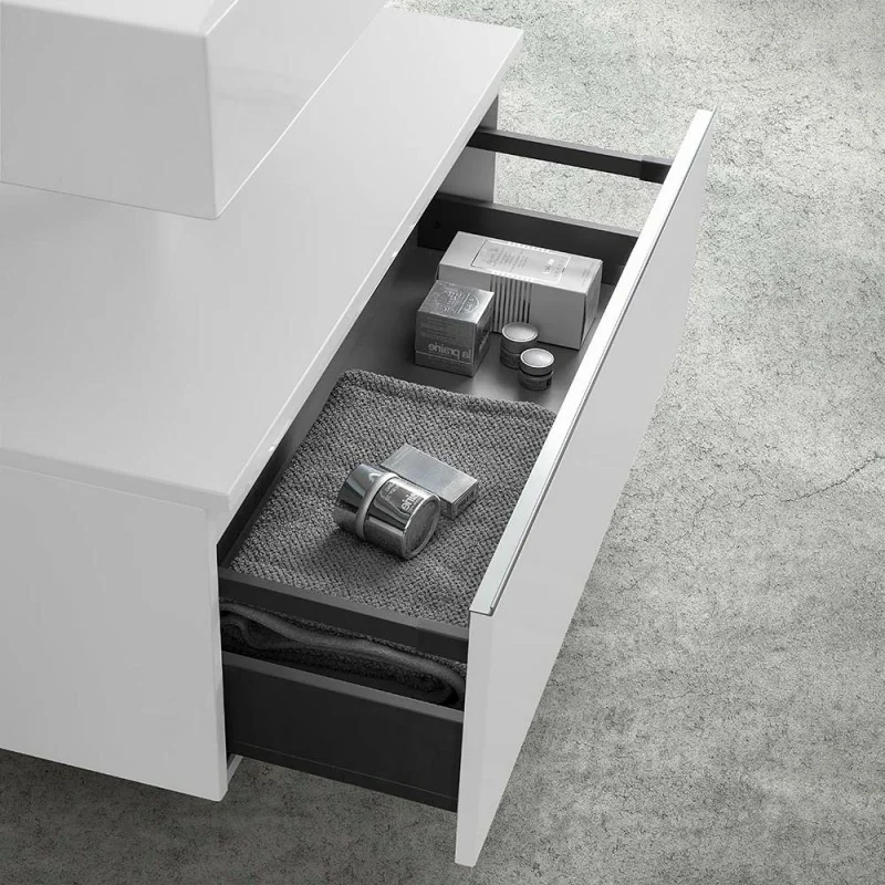 Mobile bagno con cassettone chiusura soft-close,specchio e lavabo in resina vasca decentrata Loto