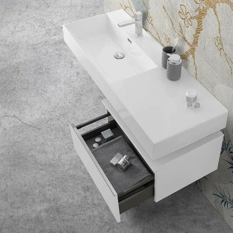 Mobile bagno sospeso 60 cm bianco lucido lavabo 120 sinistro e specchio Iside
