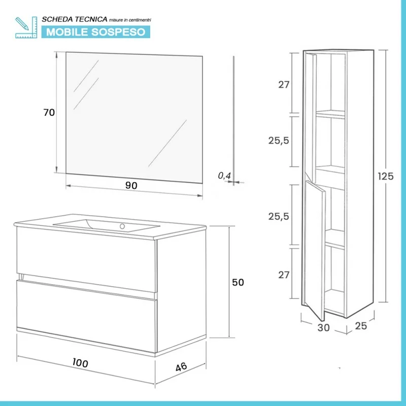 Mobile bagno sospeso 100 cm caratteristiche tecniche: