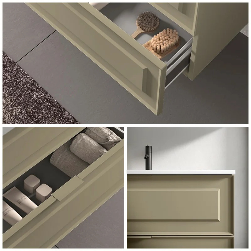 Matisse è l’arredo bagno che unisce la semplicità delle linee squadrate alla profondità del frontale bugnato:composizioni bagno sospese realizzate in legno MDF e personalizzabili con diverse finiture opache.