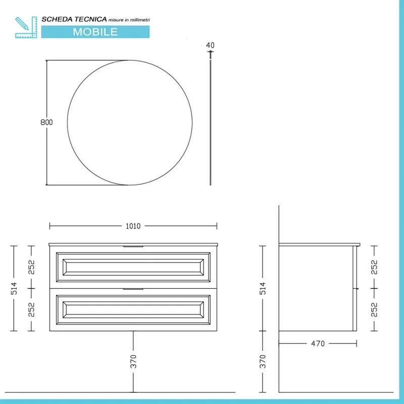 • Dimensioni mobile:L 101 x p 47 x H 51,4 cm;