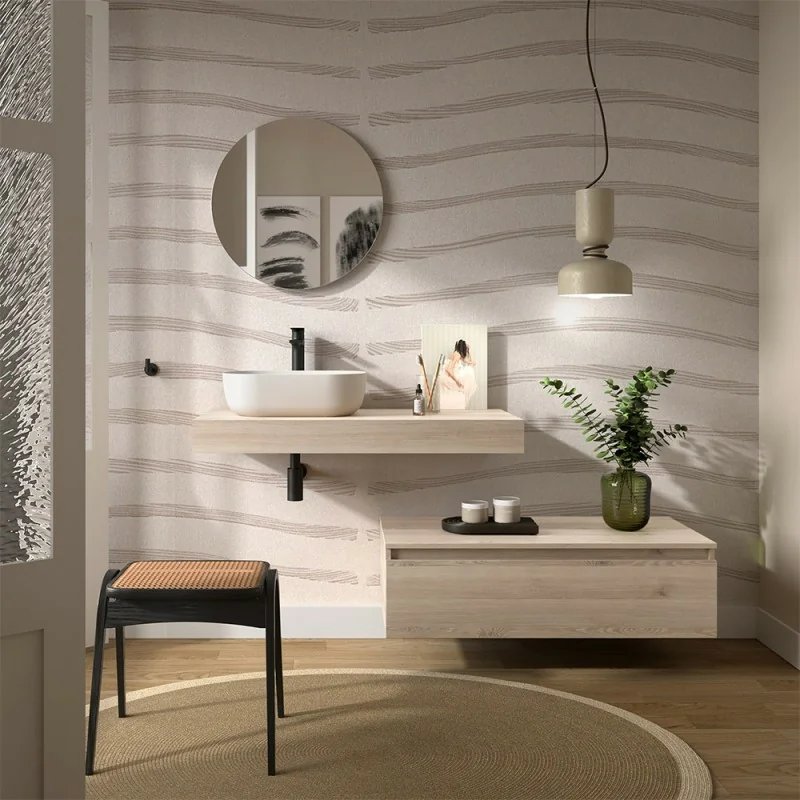 Top per lavabo da 100 cm in legno MDF rovere bali Sumo Scheda tecnica Top per lavabo da 100 cm in legno MDF rovere bali Sumo Foto ambientata Top per lavabo da 100 cm in legno MDF rovere bali Sumo