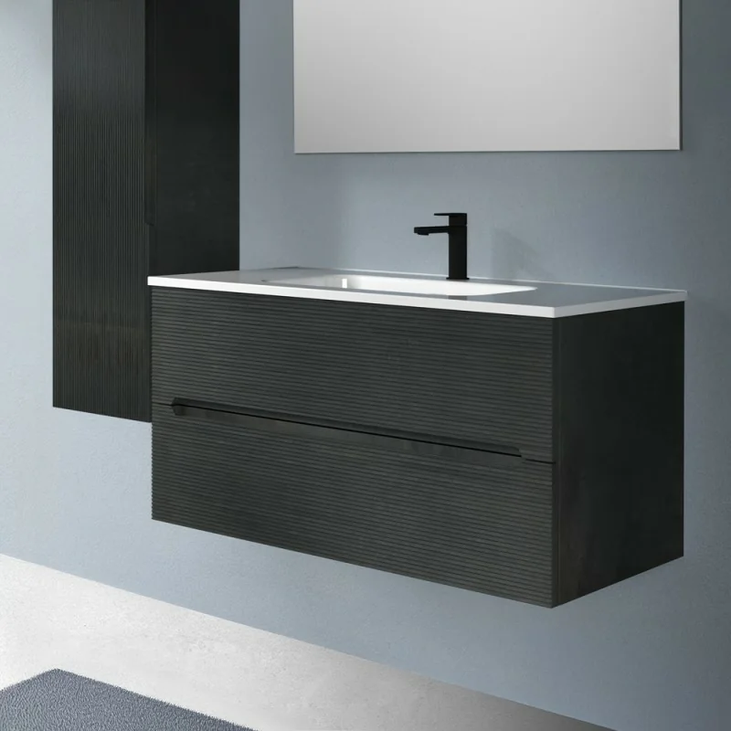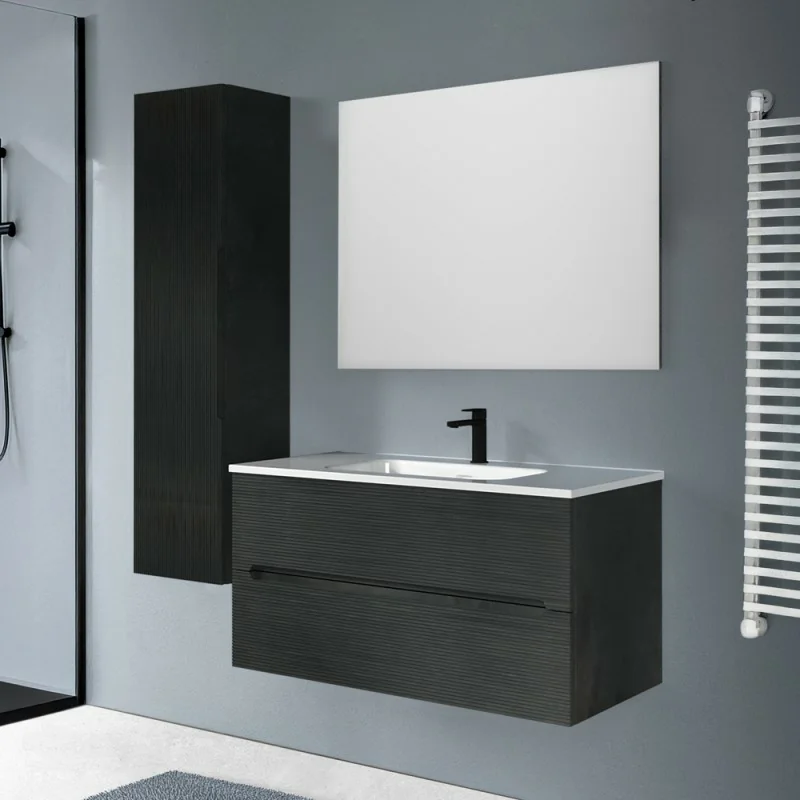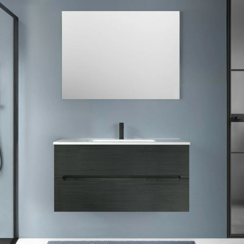 Mobile bagno sospeso 100 lava cannettato 2 cassetti lavabo e specchio Rigo