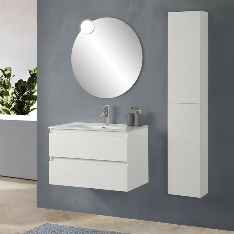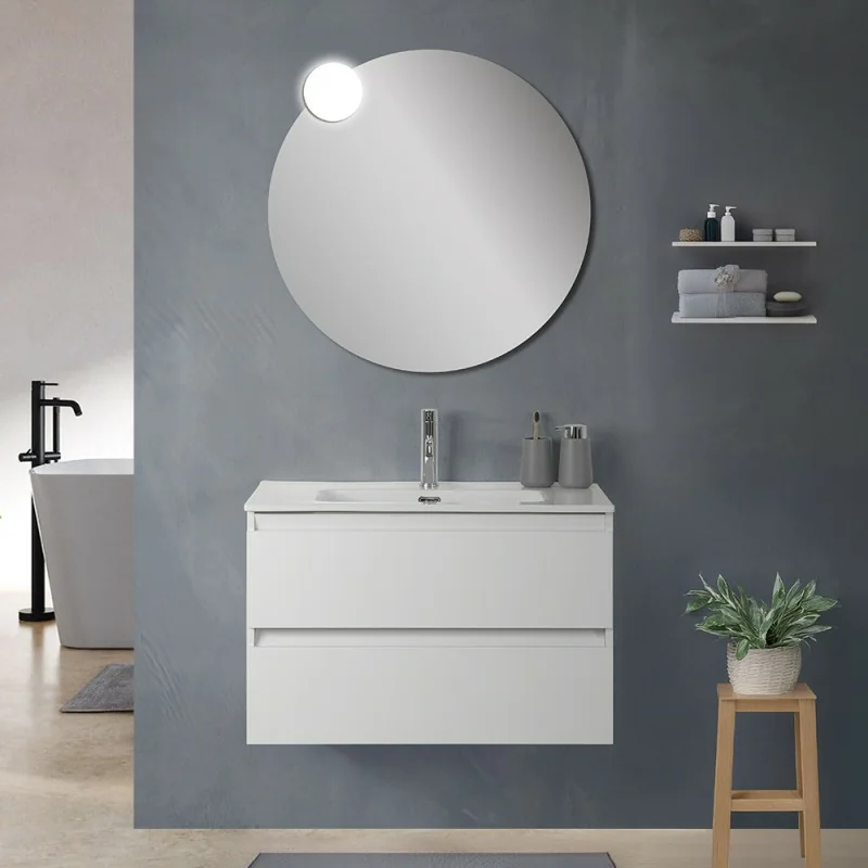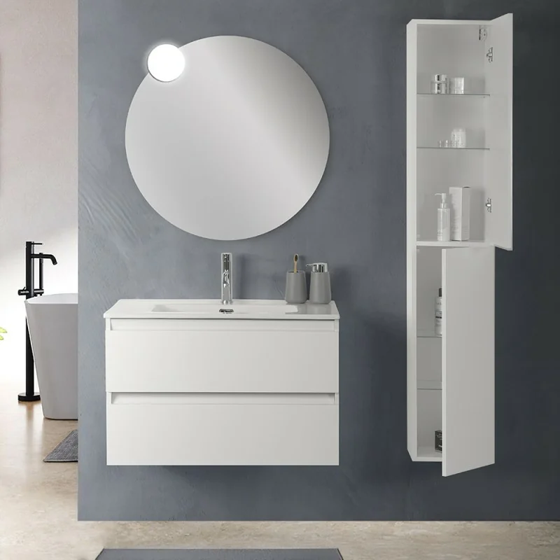 Il Mobile bagno Leda da 100 cm è un'elegante soluzione sospesa in un luminoso bianco lucido, progettata per ottimizzare lo spazio e aggiungere un tocco di raffinatezza al tuo ambiente. I due ampi cassettoni con sistema di chiusura soft-close garantiscono un utilizzo silenzioso e pratico, offrendo ampio spazio per organizzare i tuoi effetti personali e includendo anche un comodo spazio salvasifone, che massimizza la capacità interna. Completano l'offerta un lavabo integrato e uno specchio abbinato, rendendo questo mobile una scelta completa e funzionale per il tuo bagno moderno.