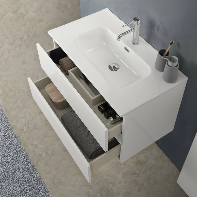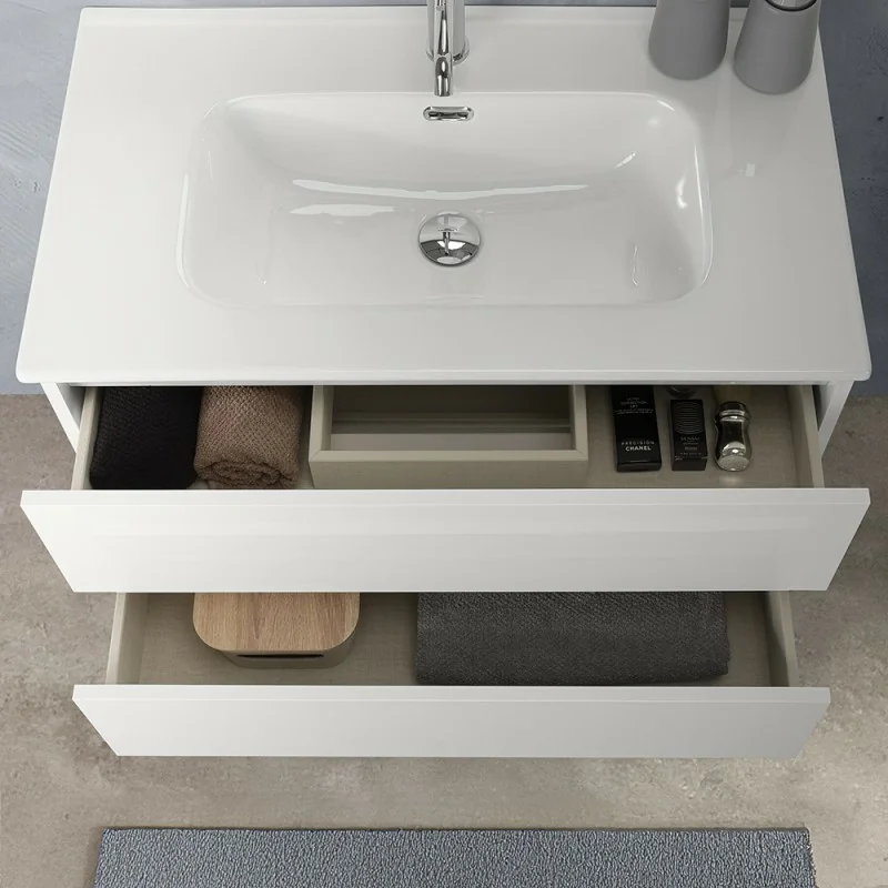 Mobile bagno 100 cm sospeso in legno nobilitato bianco lucido chiusura soft-close 2 cassettoni con lavabo e specchio inclusi Leda   Il Mobile...